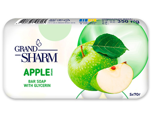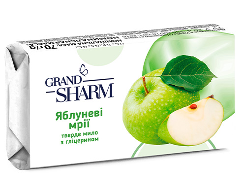 Класичне туалетне мило білого кольору, має яскравий аромат зеленого яблука.