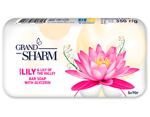 Мило ТМ Grand Шарм “Конвалія та водяна лілія” – класичне туалетне мило на основі натуральної сировини. Має аромат конвалії. Упаковка має приємний та естетичний дизайн. Добре милиться у воді будь-якої жорсткості. Повністю змивається водою.