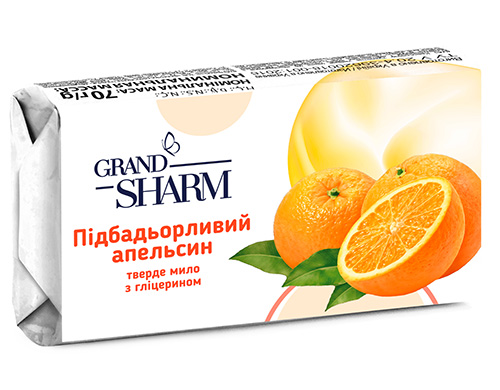 Класичне туалетне мило білого кольору, має бадьорий аромат соковитого апельсина.