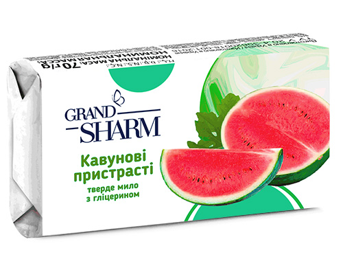 Класичне туалетне мило білого кольору, має пристрасний аромат стиглого кавуна.
